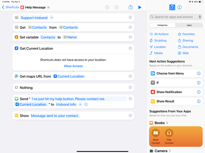 Help Message: Use this shortcut to send a message with just one click. Personalize this shortcut with the Apple ID of your desired contacts and personalized the message.